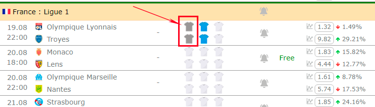 Наличие предварительных стартовых составов команд в разделе Превью матчей отмечается синей маечкой.