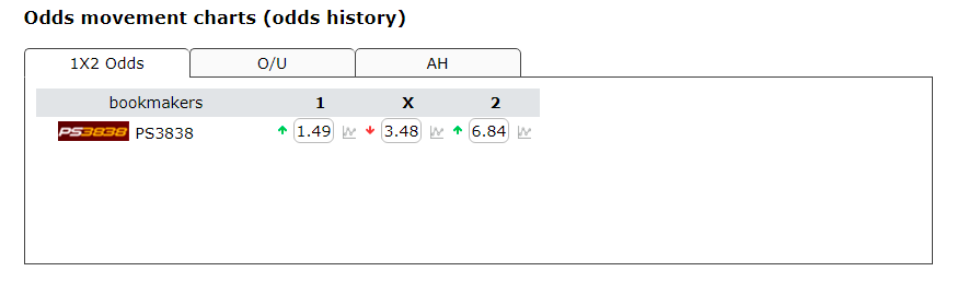 Кликнув на иконку графика - откроется окно с графиком движения коэффициента по линии профессионального букмекера ps3838.com.