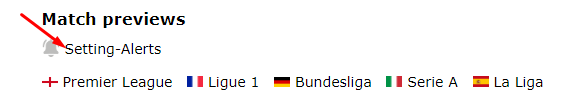 Если, вы хотите получать оповещение по конкретным лигам, то для этого необходимо в разделе Match previews в заголовке по Лиге кликнуть на "Колокольчик"