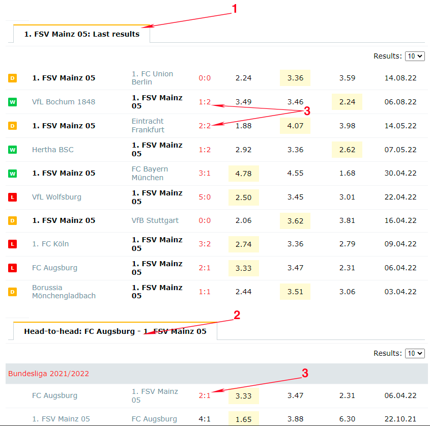1 - Последние матчи команд, по умолчанию 10 игр.